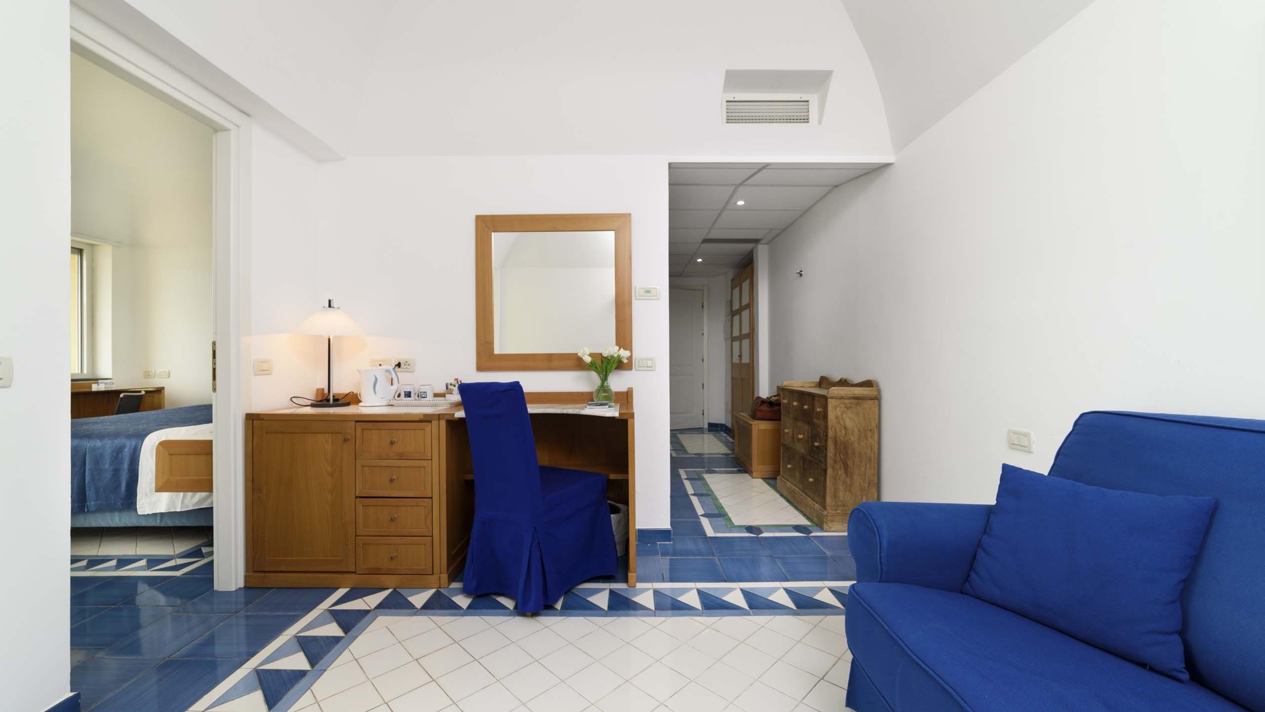 Creusa, moglie di Enea, si perse durante la sua fuga da Troia insieme al marito. Lui tornò a cercarla, ma incontrò solo la sua ombra, che lo spinse a proseguire il viaggio, iniziato per volere degli dei. La camera Creusa è una meravigliosa suite con due ambienti separati: camera con letto matrimoniale e un salottino con divano letto di una piazza e mezza.