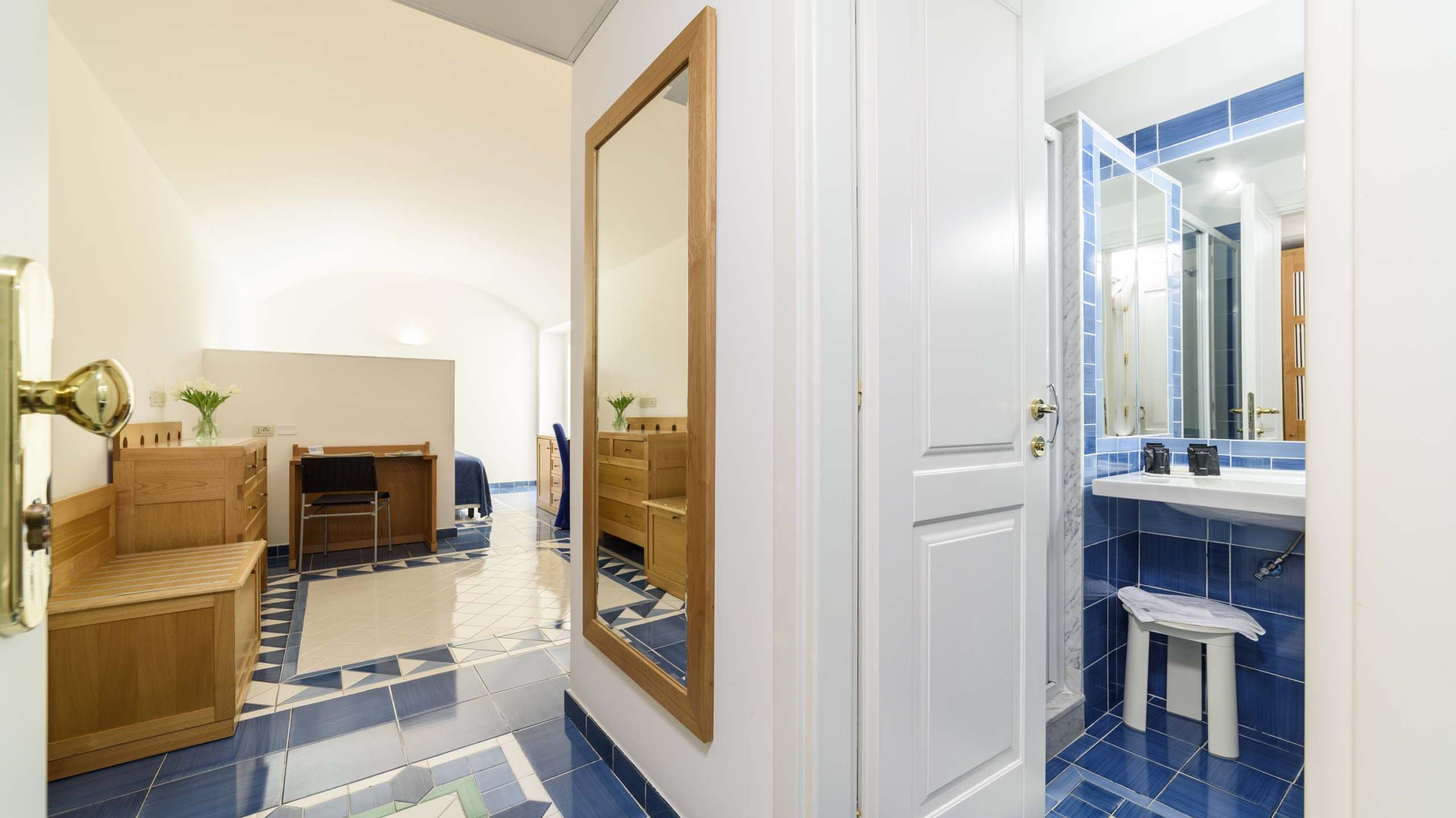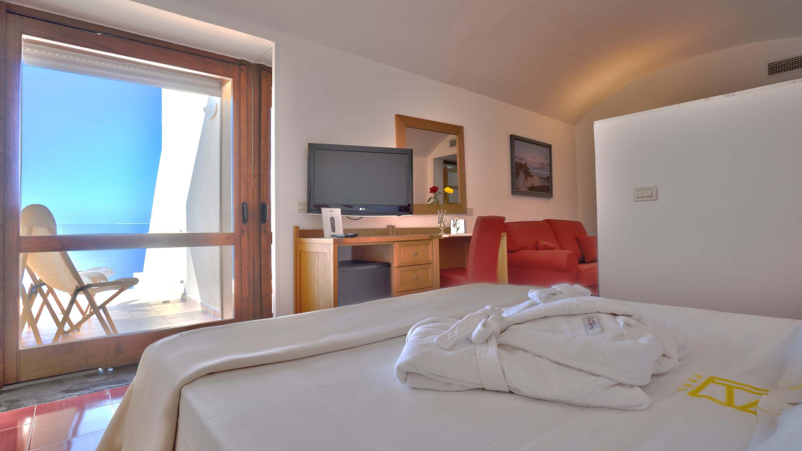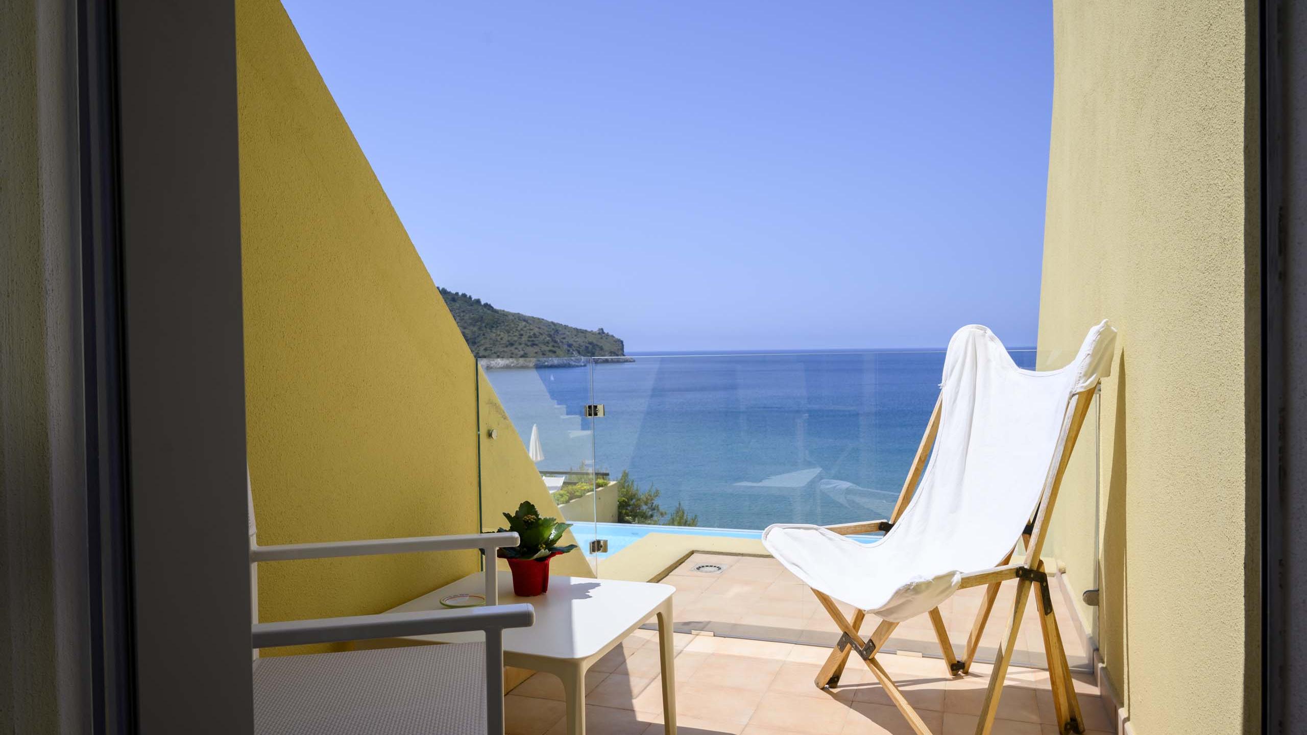 Le Junior suite vista mare sono camere eleganti di 20 m² circa, dotate di angolo soggiorno e balconcino allestito con tavolino e sedie per godere dell’incantevole vista sul Golfo di Palinuro. Ogni camera è caratterizzata da un colore e decorata con le maioliche vietresi, le quali trasmettono la vivacità e il calore della nostra terra: il verde, l’azzurro, il rosso e il giallo accompagneranno la vostra vacanza nel nostro bellissimo territorio.
